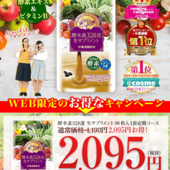 雑誌やメディアで今話題沸騰中!あの「酵水素328選生サプリメント」がWEB通販サイト限定で大変お買い得なキャンペーンを実施中です!今なら通常価格から100%…