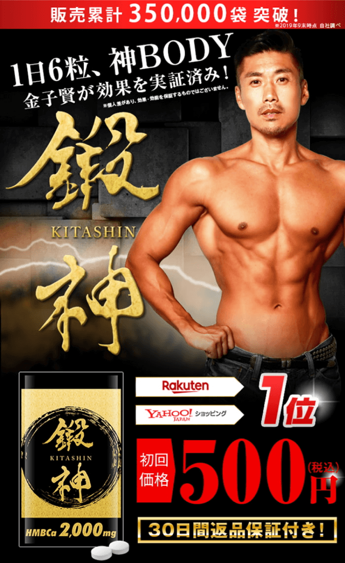 鍛神は、俳優の金子賢さんプロデュースのHMBサプリ。HMBの含有量は業界トップクラスの2000㎎。効率的にビルドアップを図れてしまうボディメイクサプリメントです。